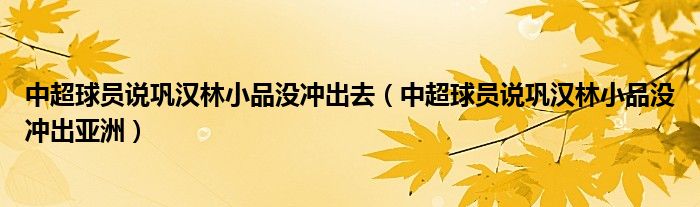 中超球員說鞏漢林小品沒沖出去(中超球員說鞏漢林小品沒沖出亞洲)
