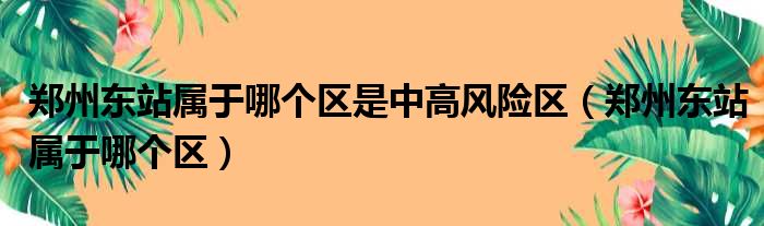 導讀 大家好,小霞來為大家解答以上的問題。鄭州東站屬于哪個區是中高風險區,鄭州東站屬于哪個區這個很多人還不知道,現在讓我們一起來看看吧!1