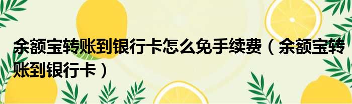 余額寶轉賬到銀行卡怎么免手續費(余額寶轉賬到銀行卡)