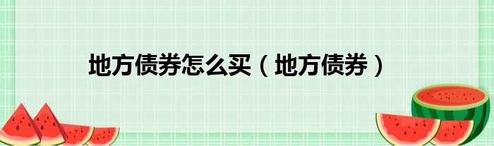 地方債券怎么買(地方債券)