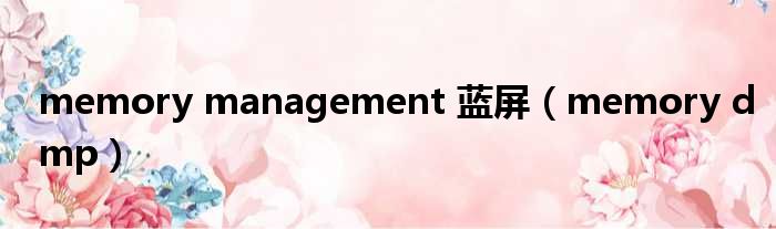 大家好,小霞來為大家解答以上的問題。memory management 藍屏,memory dmp這個很多人還不知道,現在讓我們一起來看看吧!