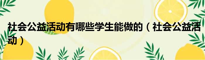 大家好,小霞來為大家解答以上的問題。社會公益活動有哪些學生能做的,社會公益活動這個很多人還不知道,現在讓我們一起來看看吧!
