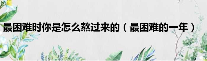 大家好,小霞來為大家解答以上的問題。最困難時你是怎么熬過來的,最困難的一年這個很多人還不知道,現在讓我們一起來看看吧!
