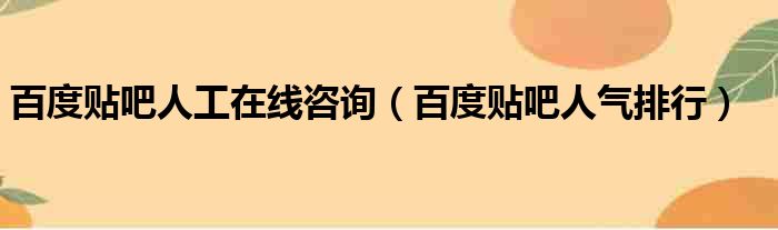 百度貼吧人工在線咨詢(百度貼吧人氣排行)