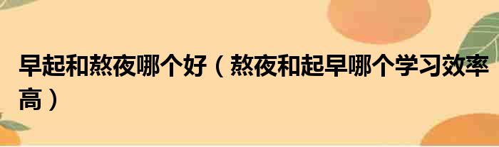 早起和熬夜哪個好(熬夜和起早哪個學習效率高)