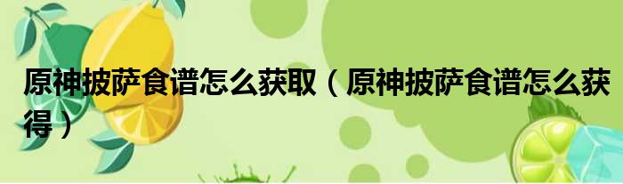 原神披薩食譜怎么獲取(原神披薩食譜怎么獲得)