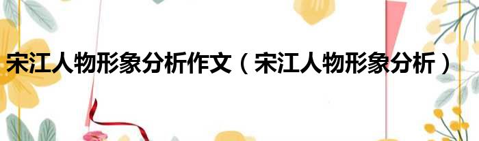 1、《水滸傳》宋江人物形象分析:孝,就是他對父兄的情感,這個在作品中深有體現。