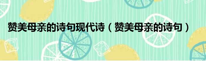 贊美母親的詩句現代詩(贊美母親的詩句)
