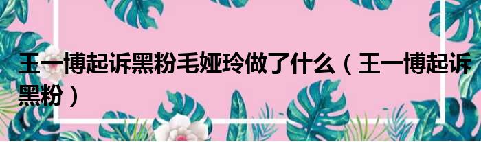 王一博起訴黑粉毛婭玲做了什么(王一博起訴黑粉)