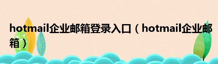 hotmail企業郵箱登錄入口(hotmail企業郵箱)