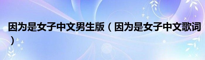 大家好,小霞來為大家解答以上的問題。因為是女子中文男生版,因為是女子中文歌詞這個很多人還不知道,現在讓我們一起來看看吧!