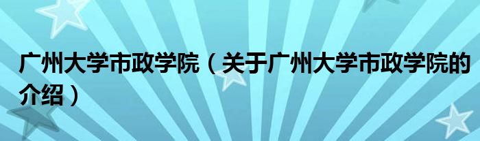 廣州大學市政學院(關于廣州大學市政學院的介紹)