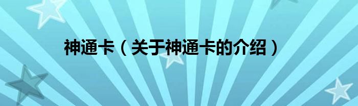 大家好,小克來為大家解答以上的問題。神通卡,關于神通卡的介紹很多人還不知道,現在讓我們一起來看看吧!