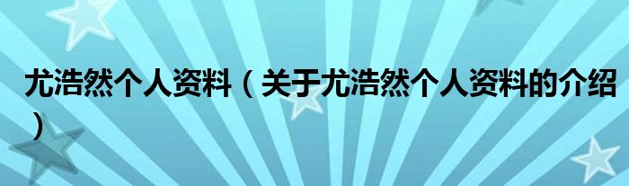 尤浩然個人資料(關于尤浩然個人資料的介紹)
