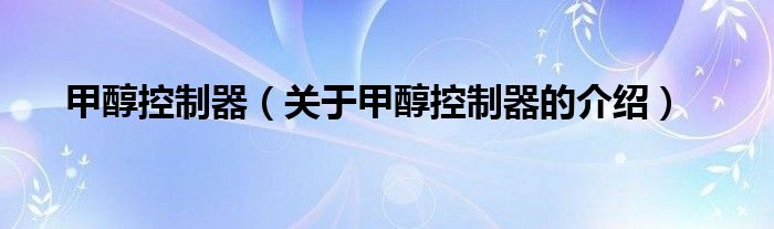 大家好,小克來為大家解答以上的問題。甲醇控制器,關于甲醇控制器的介紹很多人還不知道,現在讓我們一起來看看吧!