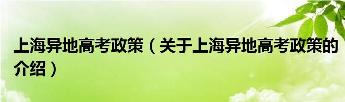 上海異地高考政策(關于上海異地高考政策的介紹)