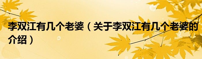 李雙江有幾個老婆(關于李雙江有幾個老婆的介紹)