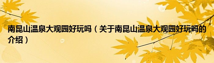 南昆山溫泉大觀園好玩嗎(關于南昆山溫泉大觀園好玩嗎的介紹)