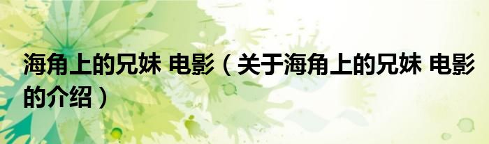 海角上的兄妹 電影(關于海角上的兄妹 電影的介紹)