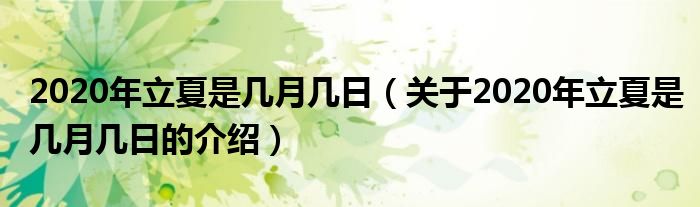 2020年立夏是幾月幾日(關于2020年立夏是幾月幾日的介紹)