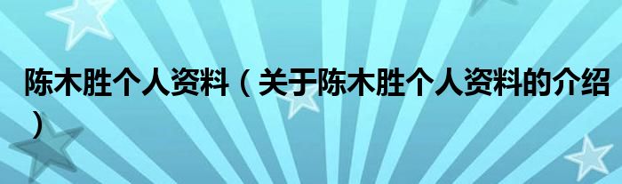 陳木勝個人資料(關于陳木勝個人資料的介紹)
