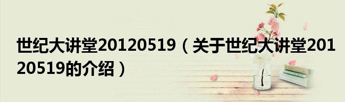 世紀大講堂20120519(關于世紀大講堂20120519的介紹)