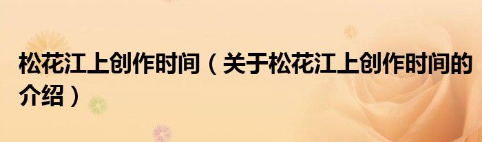 松花江上創作時間(關于松花江上創作時間的介紹)