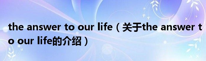 the answer to our life(關于the answer to our life的介紹)