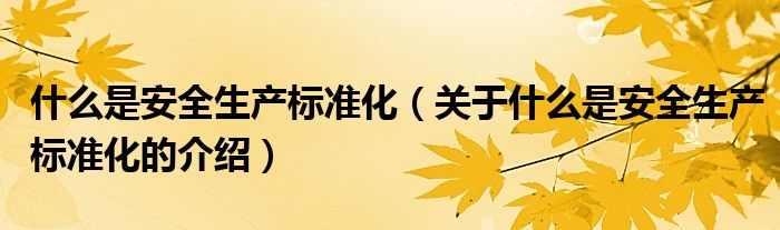 什么是安全生產標準化(關于什么是安全生產標準化的介紹)