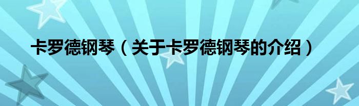 卡羅德鋼琴(關于卡羅德鋼琴的介紹)