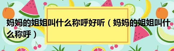 媽媽的姐姐叫什么稱呼好聽(媽媽的姐姐叫什么稱呼)