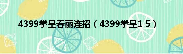 大家好,小霞來為大家解答以上的問題。4399拳皇春麗連招,4399拳皇1 5這個很多人還不知道,現在讓我們一起來看看吧!