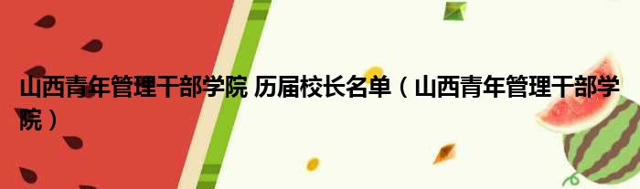 山西青年管理干部學院 歷屆校長名單(山西青年管理干部學院)