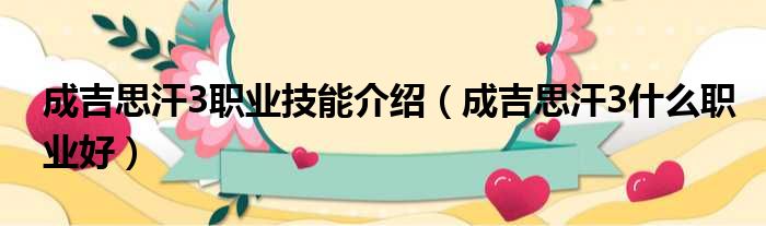 成吉思汗3職業技能介紹(成吉思汗3什么職業好)