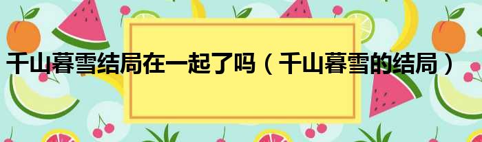 千山暮雪結局在一起了嗎(千山暮雪的結局)