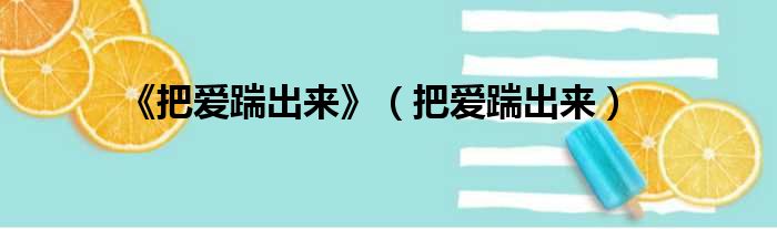 大家好,小霞來為大家解答以上的問題。《把愛踹出來》,把愛踹出來這個很多人還不知道,現在讓我們一起來看看吧!