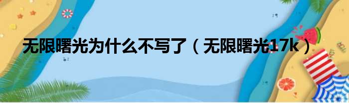 大家好,小霞來為大家解答以上的問題。無限曙光為什么不寫了,無限曙光17k這個很多人還不知道,現在讓我們一起來看看吧!
