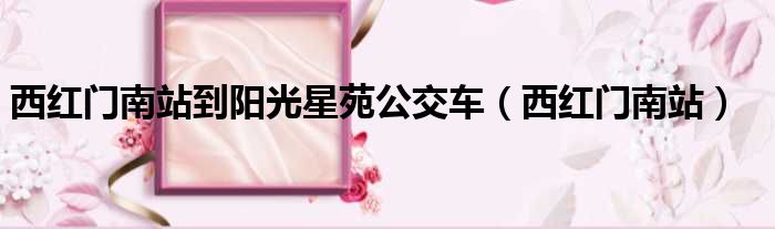 大家好,小霞來為大家解答以上的問題。西紅門南站到陽光星苑公交車,西紅門南站這個很多人還不知道,現在讓我們一起來看看吧!