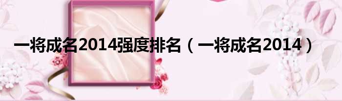 大家好,小霞來為大家解答以上的問題。一將成名2014強度排名,一將成名2014這個很多人還不知道,現在讓我們一起來看看吧!