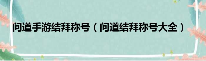 大家好,小霞來為大家解答以上的問題。問道手游結拜稱號,問道結拜稱號大全這個很多人還不知道,現在讓我們一起來看看吧!