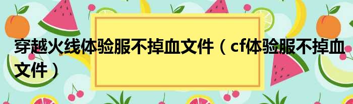穿越火線體驗服不掉血文件(cf體驗服不掉血文件)