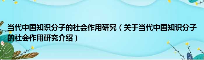 當代中國知識分子的社會作用研究(關于當代中國知識分子的社會作用研究介紹)