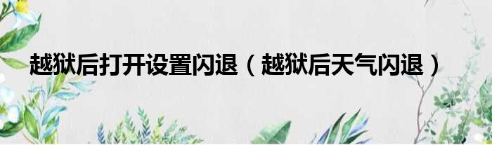 大家好,小霞來為大家解答以上的問題。越獄后打開設置閃退,越獄后天氣閃退這個很多人還不知道,現在讓我們一起來看看吧!