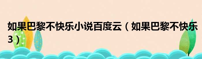 大家好,小霞來為大家解答以上的問題。如果巴黎不快樂小說百度云,如果巴黎不快樂3這個很多人還不知道,現在讓我們一起來看看吧!
