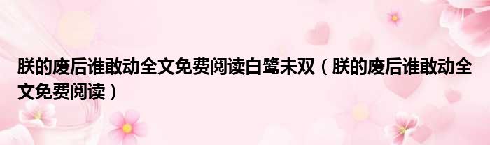 朕的廢后誰敢動全文免費閱讀白鷺未雙(朕的廢后誰敢動全文免費閱讀)