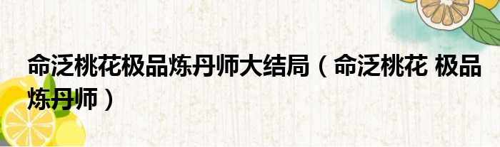 大家好,小霞來為大家解答以上的問題。命泛桃花極品煉丹師大結局,命泛桃花 極品煉丹師這個很多人還不知道,現在讓我們一起來看看吧!