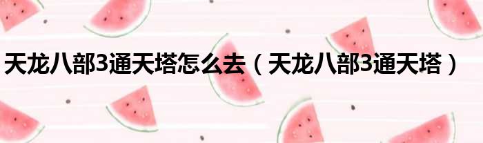 天龍八部3通天塔怎么去(天龍八部3通天塔)