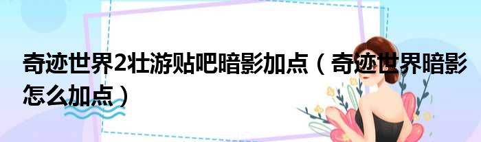 奇跡世界2壯游貼吧暗影加點(奇跡世界暗影怎么加點)