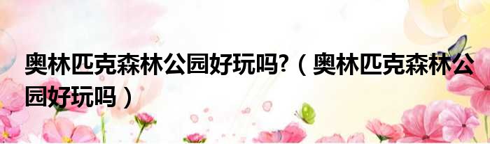 奧林匹克森林公園好玩嗎?(奧林匹克森林公園好玩嗎)