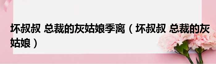 大家好,小霞來為大家解答以上的問題。壞叔叔 總裁的灰姑娘季離,壞叔叔 總裁的灰姑娘這個很多人還不知道,現在讓我們一起來看看吧!